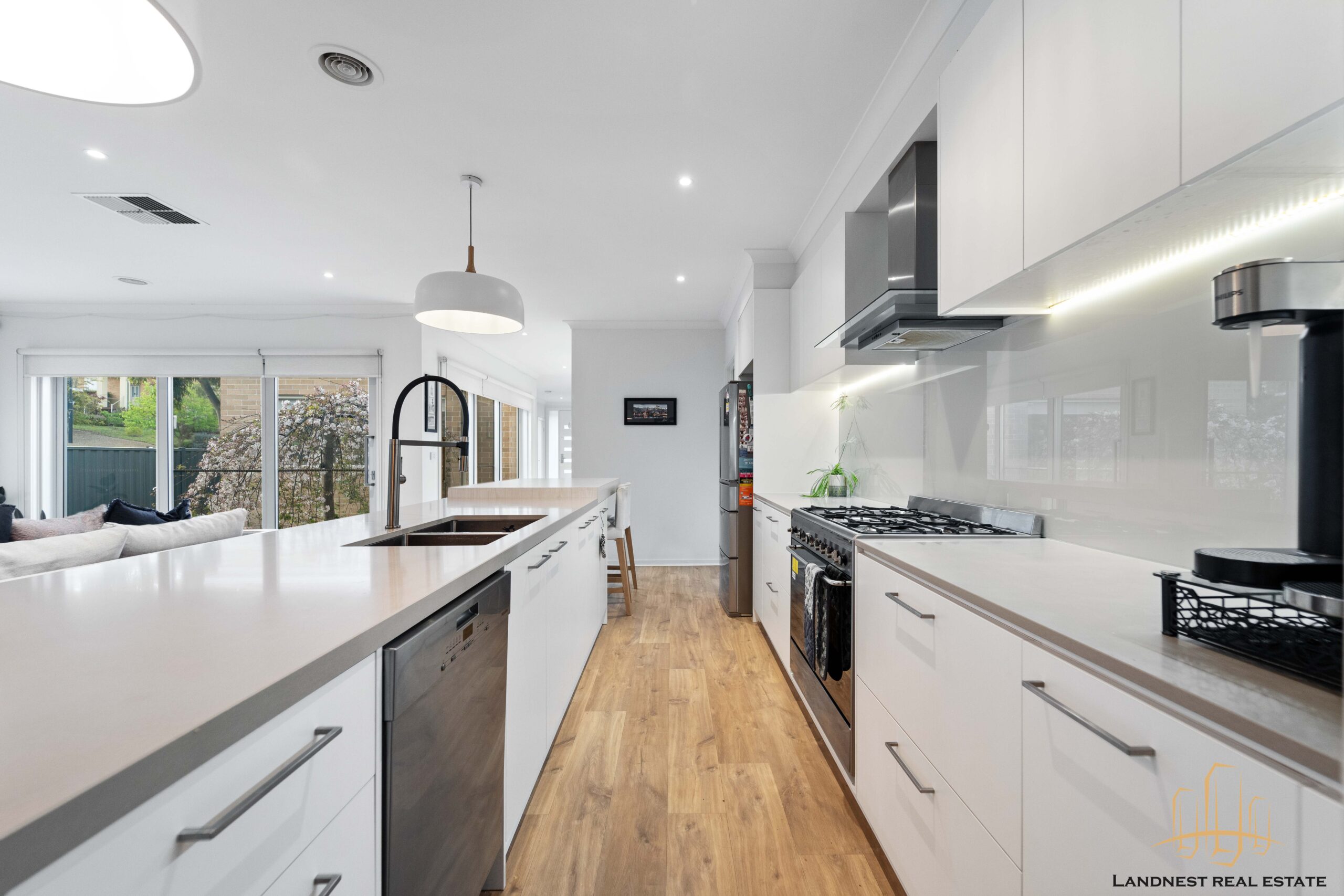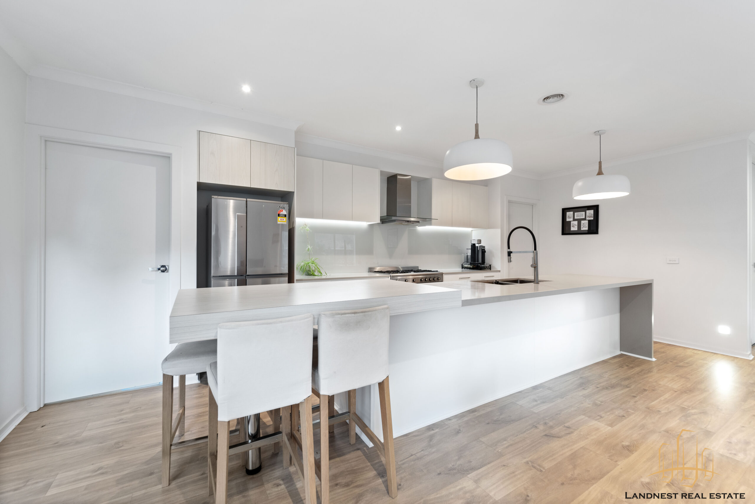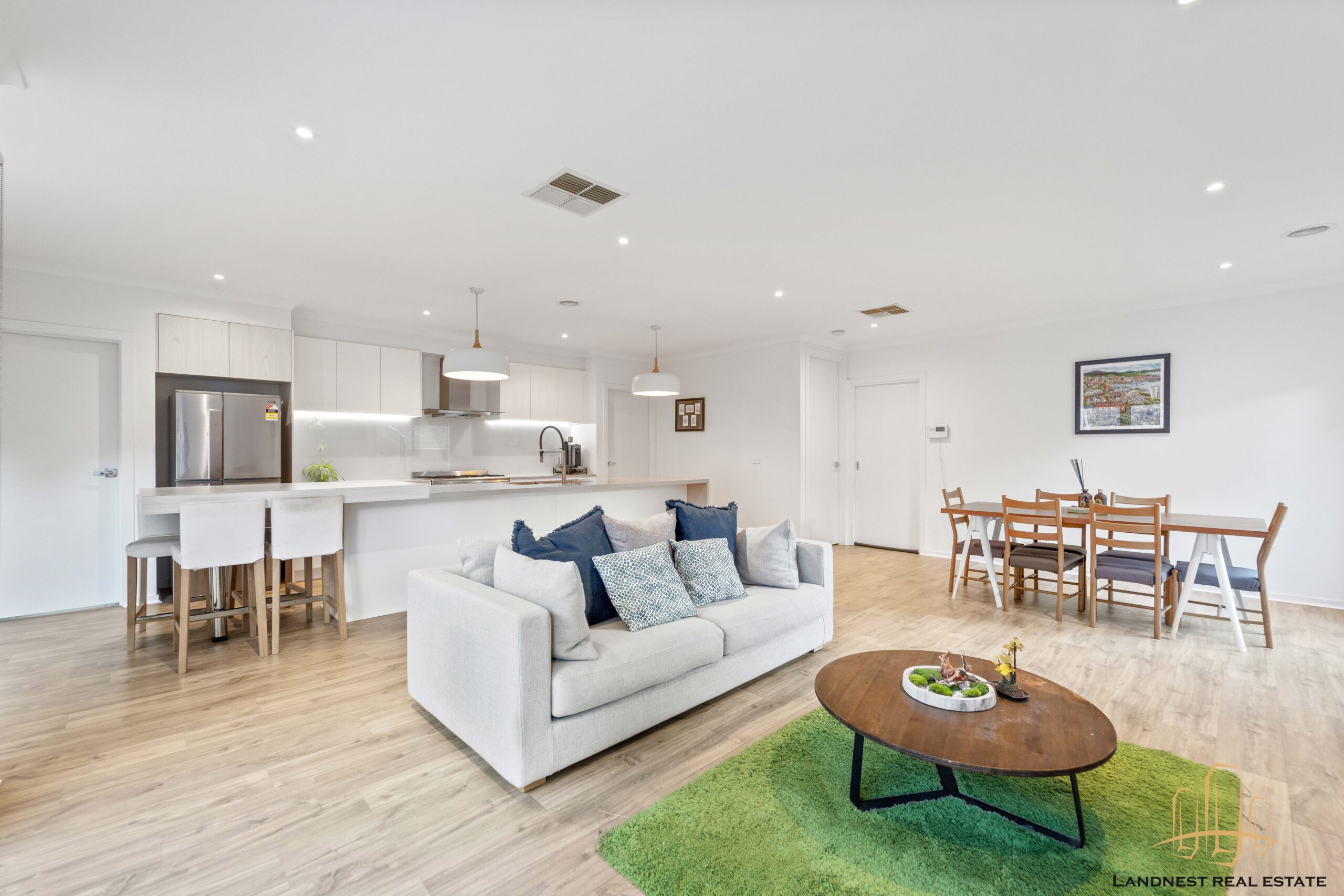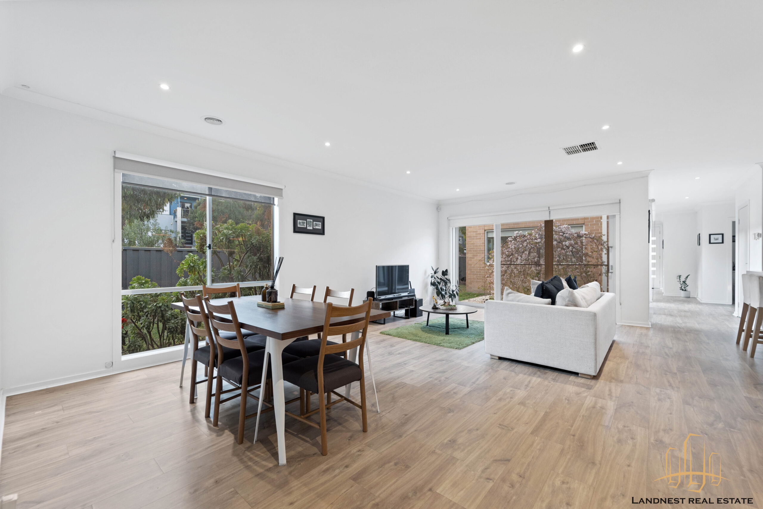 For your comfort, the home includes ducted heating and controllable air conditioning, and solid timber flooring. Additionally, it features a family-sized laundry and a separate toilet. To complete the picture, there is a private courtyard accessible from the living area, a private backyard for entertaining and children’s play, and the convenience of a remote-controlled double garage.