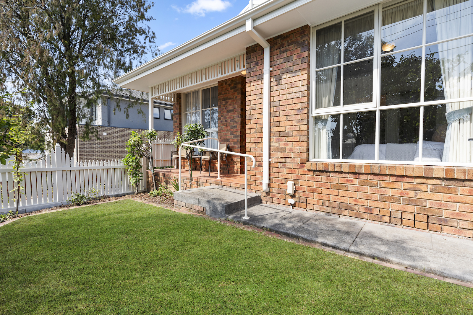 Sought-after three-bedroom residence with low-maintenance private yards.
