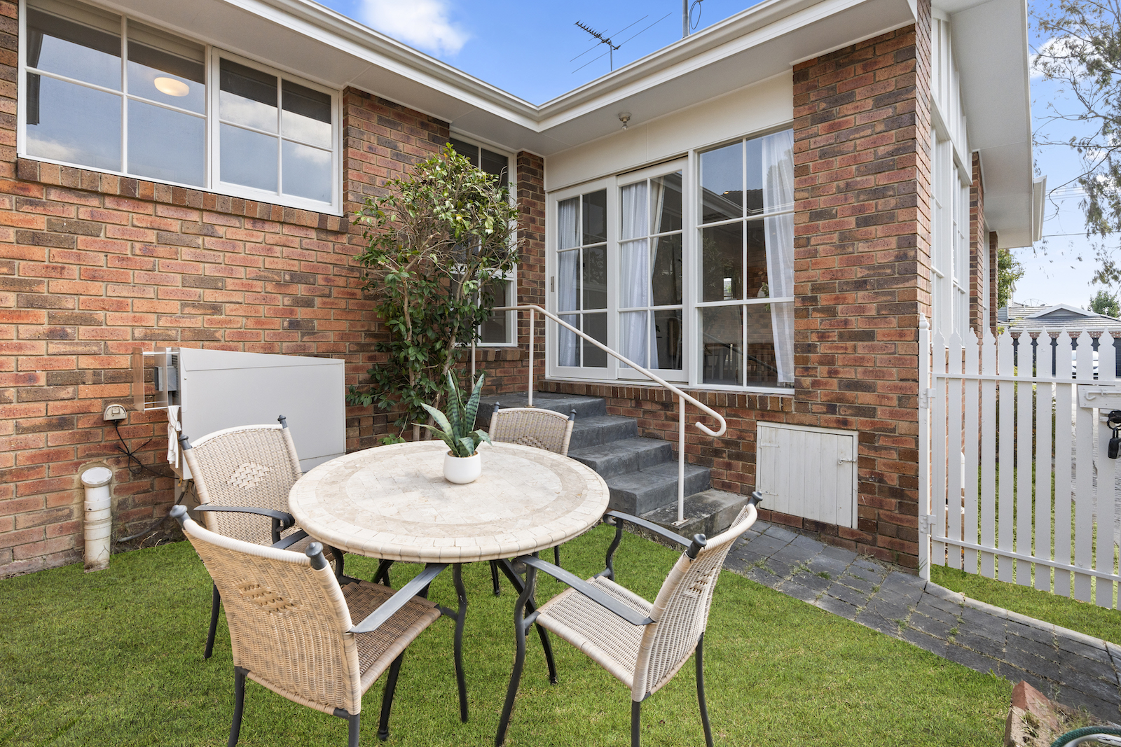 Step into this inviting unit and experience the warmth and space it offers from the get-go. Positioned at the front of a trio of units, this highly sought-after three-bedroom residence boasts not one, but two private courtyards with leafy garden vista.